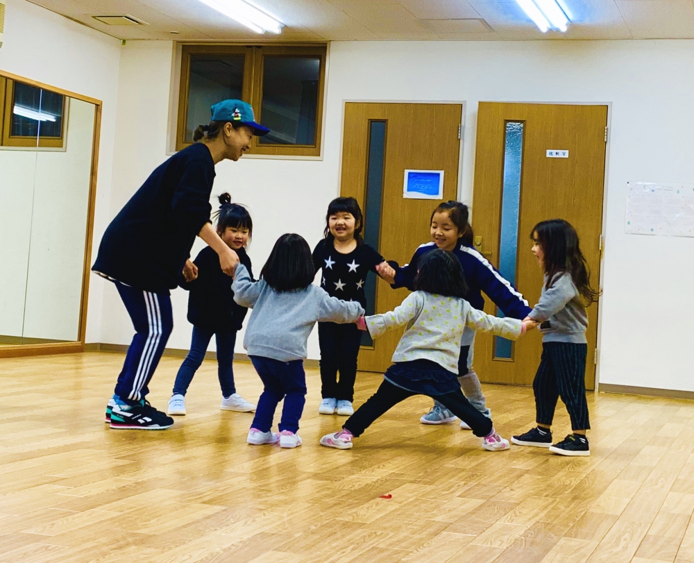 ウォーミングアップから始まり、ストレッチ、リズムトレーニングなど英単語を交えながら身体全体を使ってダンスをしながら自然に英語を吸収していきます♫