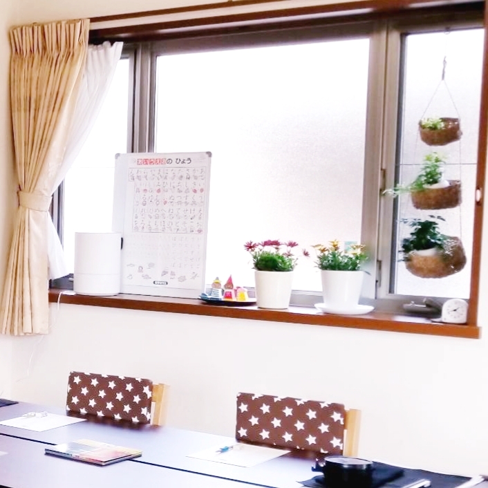 明るいリビングでゆったりと、少人数ですのでしっかりと稽古ができます。